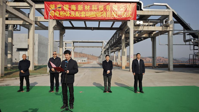 董巍一行深入生产车间现场,亲手将银板郑重投入溶银釜,标志着银海导电粉体及配套硝酸银项目正式投产。