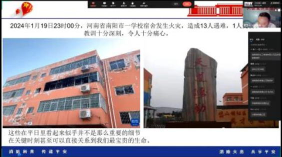本次培训以线上“云课堂”的形式开展,就如何解决消防安全管理工作的重难点和落实消防安全主体责任制进行了讲解,并详细阐述了三级防火责任制、安全管理责任人、“三管三必须”等内容,进一步明确了安全管理思路,压实了各级各岗位安全责任。通过分析近期发生的典型火灾安全事故案例,对火灾容易发生的部位、如何预防火灾、火灾中如何逃生自救等内容进行了重点讲解,注意用电、燃气安全,规范停车充电、畅通生命通道,增强全体员工在工作和生活中的消防意识。